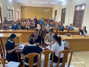 Cán bộ TYM chi nhánh Hải Phòng giải ngân, hỗ trợ vốn vay cho hội viên phụ nữ xã Phù Ninh (nay là xã Việt Khê).