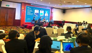 Ông Phùng Đình Kiện – Phó Tổng Giám đốc TYM tham gia phiên tọa đàm (thứ 4, từ trái sang) tại Hội thảo quốc tế “Chia sẻ kinh nghiệm quốc tế và bài học kinh nghiệm góp phần thúc đẩy chính sách cho ngành nông nghiệp về tài trợ rủi ro khí hậu”