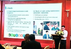 Ông Lưu Văn Thắng – Cán bộ thực hiện nhiệm vụ Phó Trưởng phòng – Phòng Tín dụng và Phát triển trình bày chuyên đề “Sản phẩm tài chính sáng tạo và giải pháp số: Ứng dụng đánh giá tín dụng số của TYM”